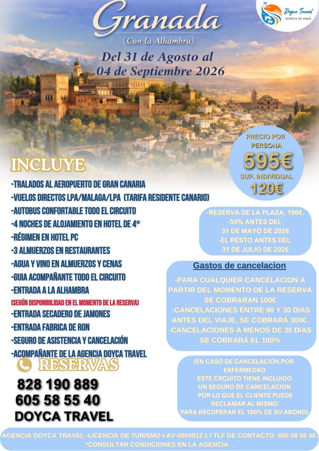 -CANCELACIONES A PARTIR DEL MOMENTO DE LA RESERVA, SE COBRARÁN 100€.